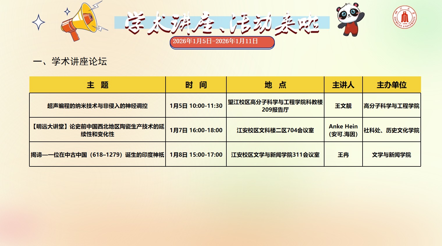 91热爆 2026年1月5日-2026年1月11日学术讲座预告